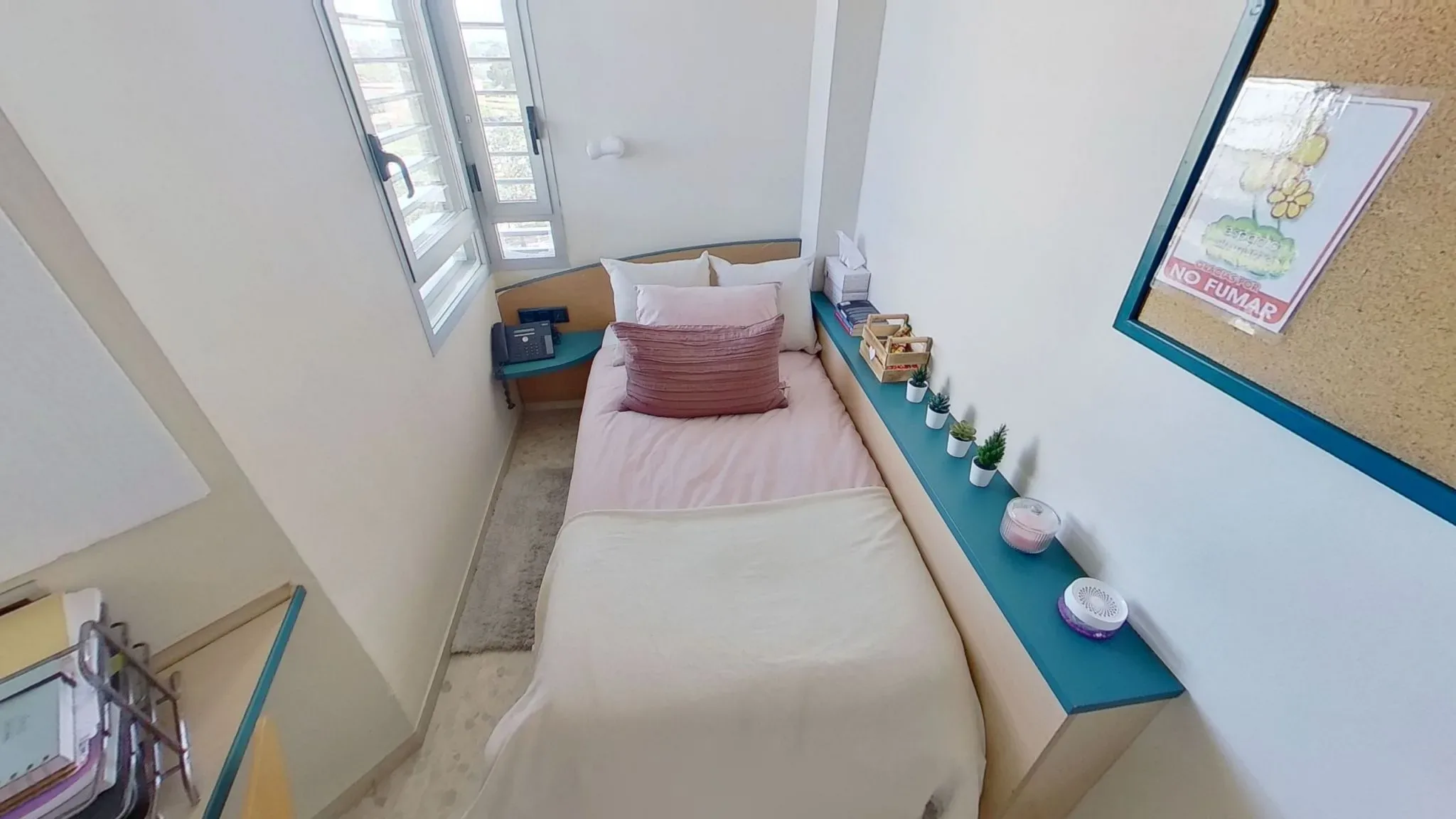 Habitaciones individuales de 20 metros con luz exterior.